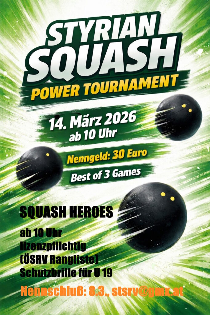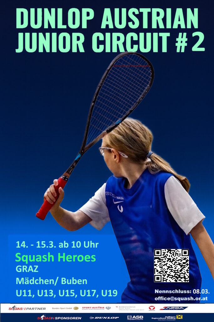 14.02.26 / Ankündigung: Dunlop Austrian Junior Circuit #2 + Styrian Squash Power Tournament am 14. & 15.3. in Graz Karolin Wabro Februar 14th, 2026 Ausschreibung AJC #2 – GrazHerunterladen