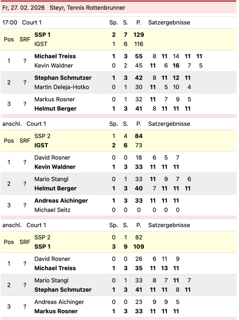 2. Spieltag der 1. LL (14.11.25) A B 4. Spieltag der 1. LL (27.02.26) 6. Spieltag/Endrunde der 1. LL (18.04.26) |